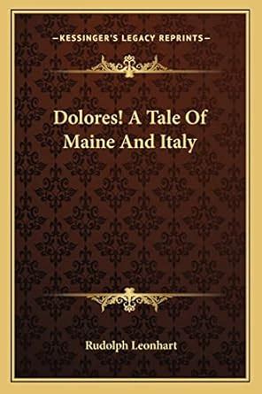 Read Online Dolores! A Tale of Maine and Italy... PDF By Click Button. Dolores! A Tale of Maine and Italy... it’s easy to recommend a new book category such as Novel, journal, comic, magazin, ect. You see it and you just know that the designer is also an author and understands the challenges involved with having a good book. You can easy klick for detailing book and you can read it online, even you can download it