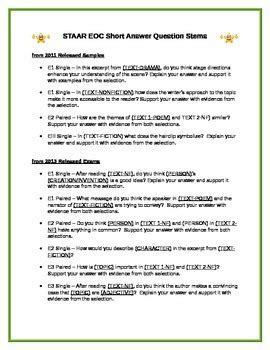 Read Online Staar Short Answer Question Stems Epub online is a convenient and frugal way to read Staar Short Answer Question Stems you love right from the comfort of your own home. Yes, there sites where you can get Epub "for free" but the ones listed below are clean from viruses and completely legal to use.